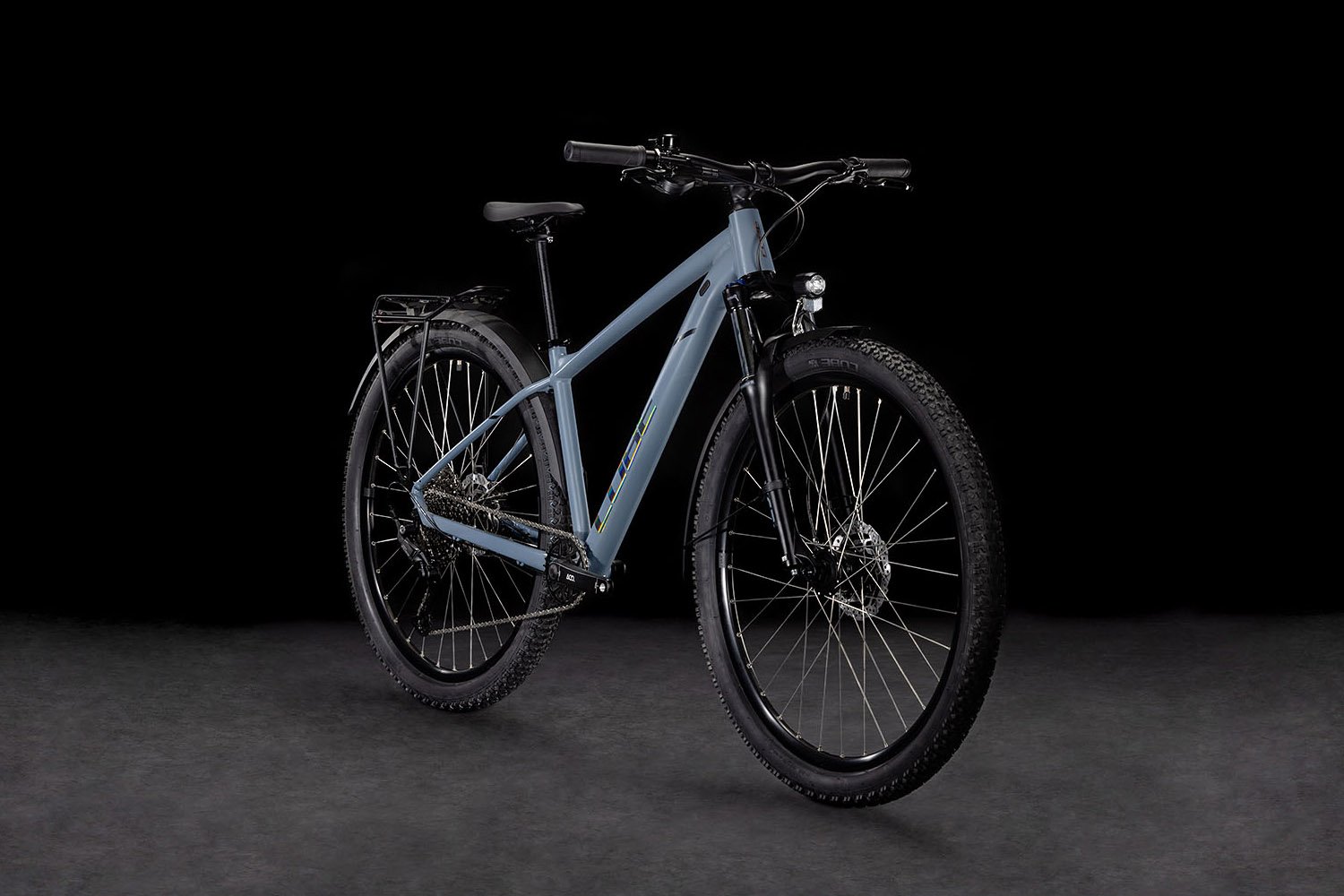 Der Aim Allroad Rahmen setzt in Sachen Vielseitigkeit neue Maßstäbe. Er kommt mit Schutzblechen, Gepäckträger und Lichtanlage daher und ist somit direkt startklar für alles, was von ihm verlangt wird. Außerdem hat Cube ihm ein geschraubtes Tretlager gegeben und die Züge ins Innere verlegt, damit sie ihren Job lange machen und einfach gewartet werden können. Die Aufnahme für eine Flat Mount Scheibenbremse ist nahtlos in die Seitenständeraufnahme integriert. Die spezielle Geometrie hat ein niedrigeres Oberrohr für superzuverlässiges Handling und lässt viel Platz für breite, griffige, komfortable 2.25 Zoll Reifen. Dazu ist das Size Split System breit aufgestellt – so findest du mit Sicherheit das für dich perfekt passende Aim.