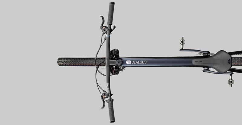 Rahmen: NEW JEALOUS Carbon Superlite, Gewicht: 950 g, Maximale Reifenbreite: 2.25″, Max. KB: 36 Zähne, 1-fach Rahmen